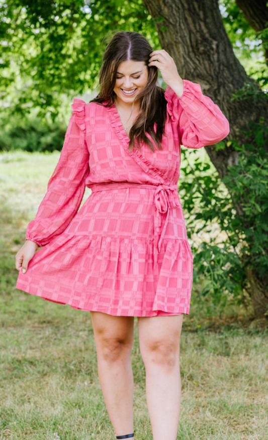 Adelyn Rae Mel Textured Ruffle Wrap Mini Dress | Large