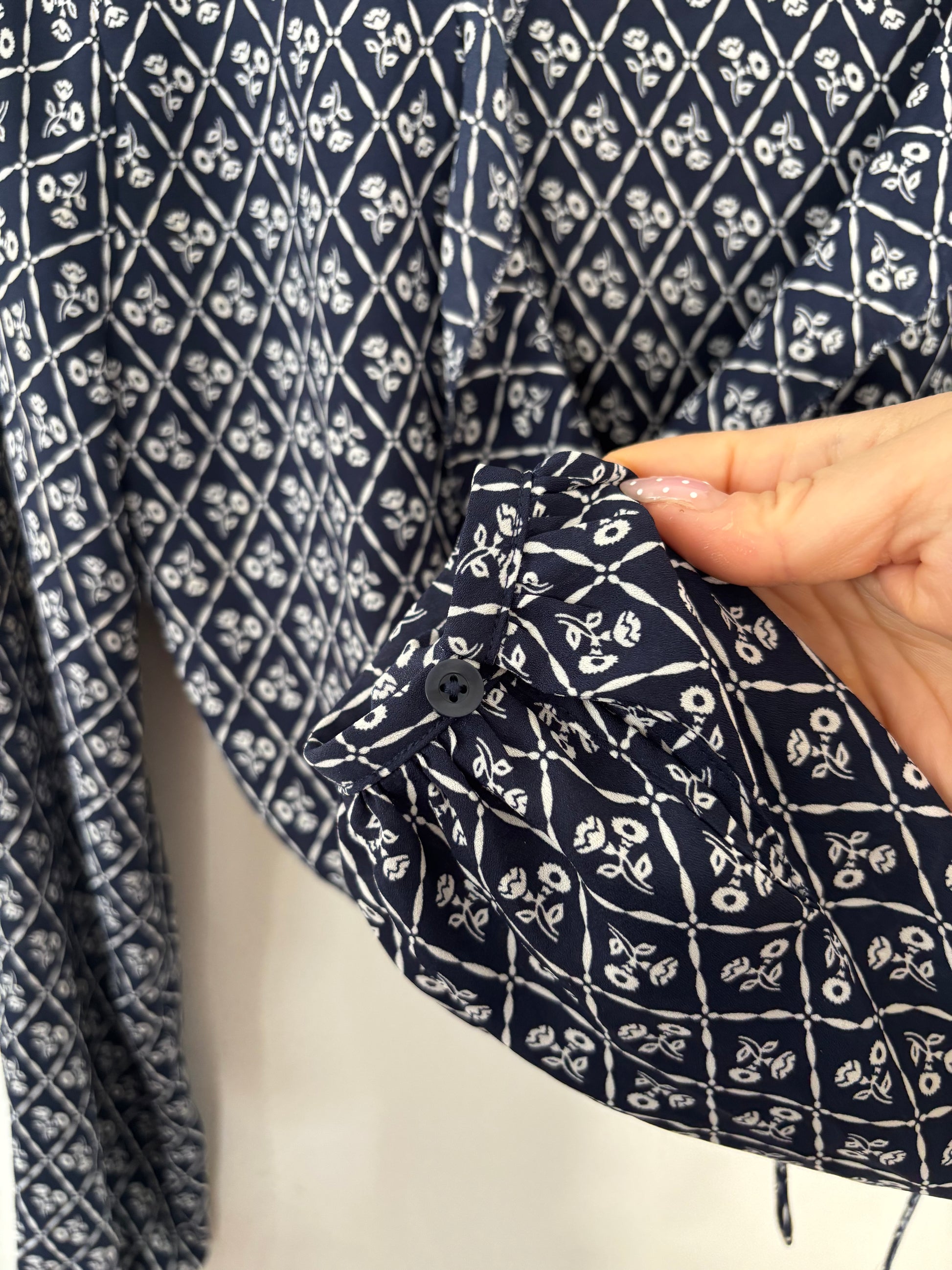 Details/fit: Cropped length, features long sleeves and a tie closure (under button, outer tie up).