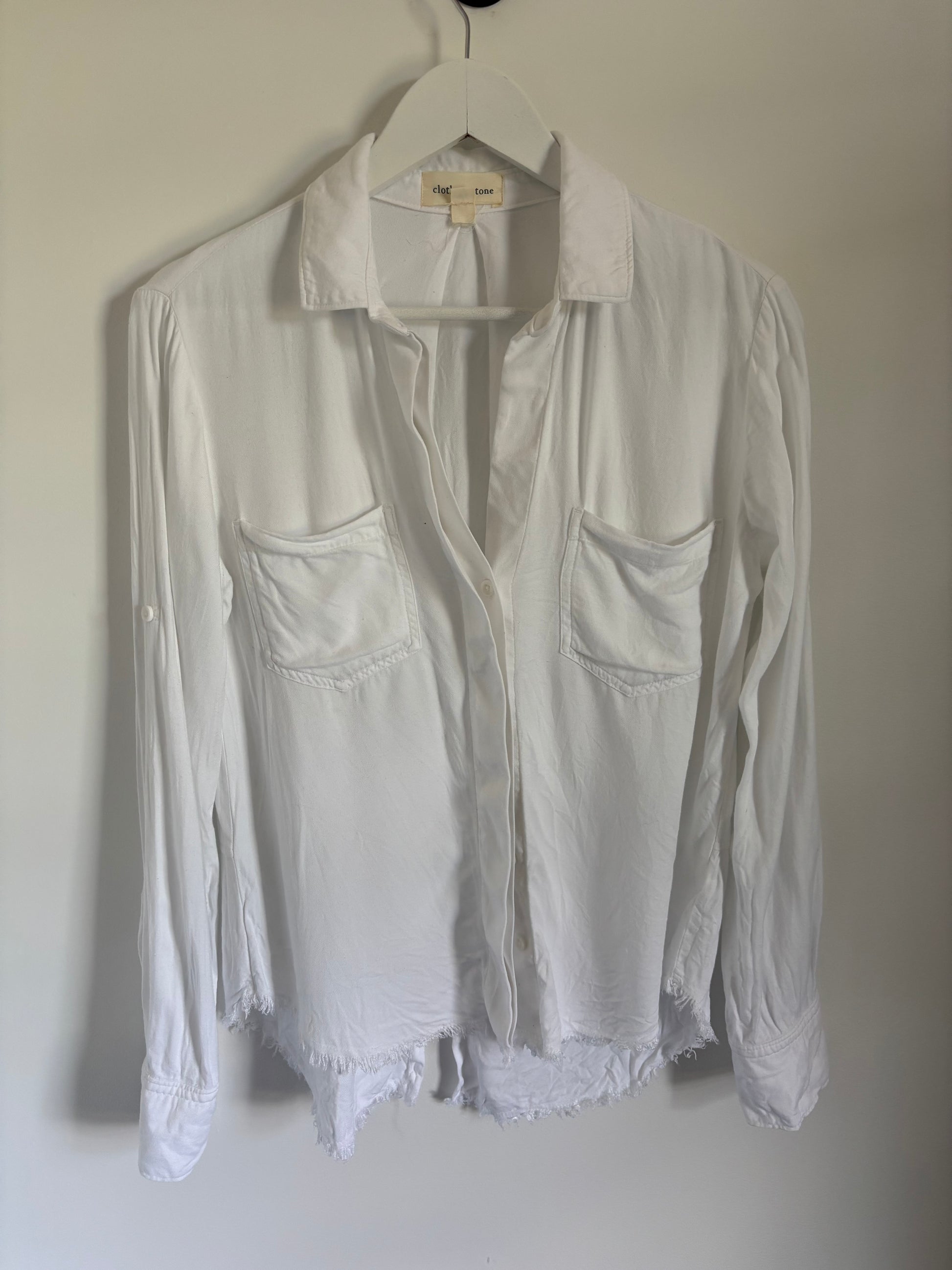 Cloth & Stone Freyed Button Up Shirt *White* | XS (Oversized)