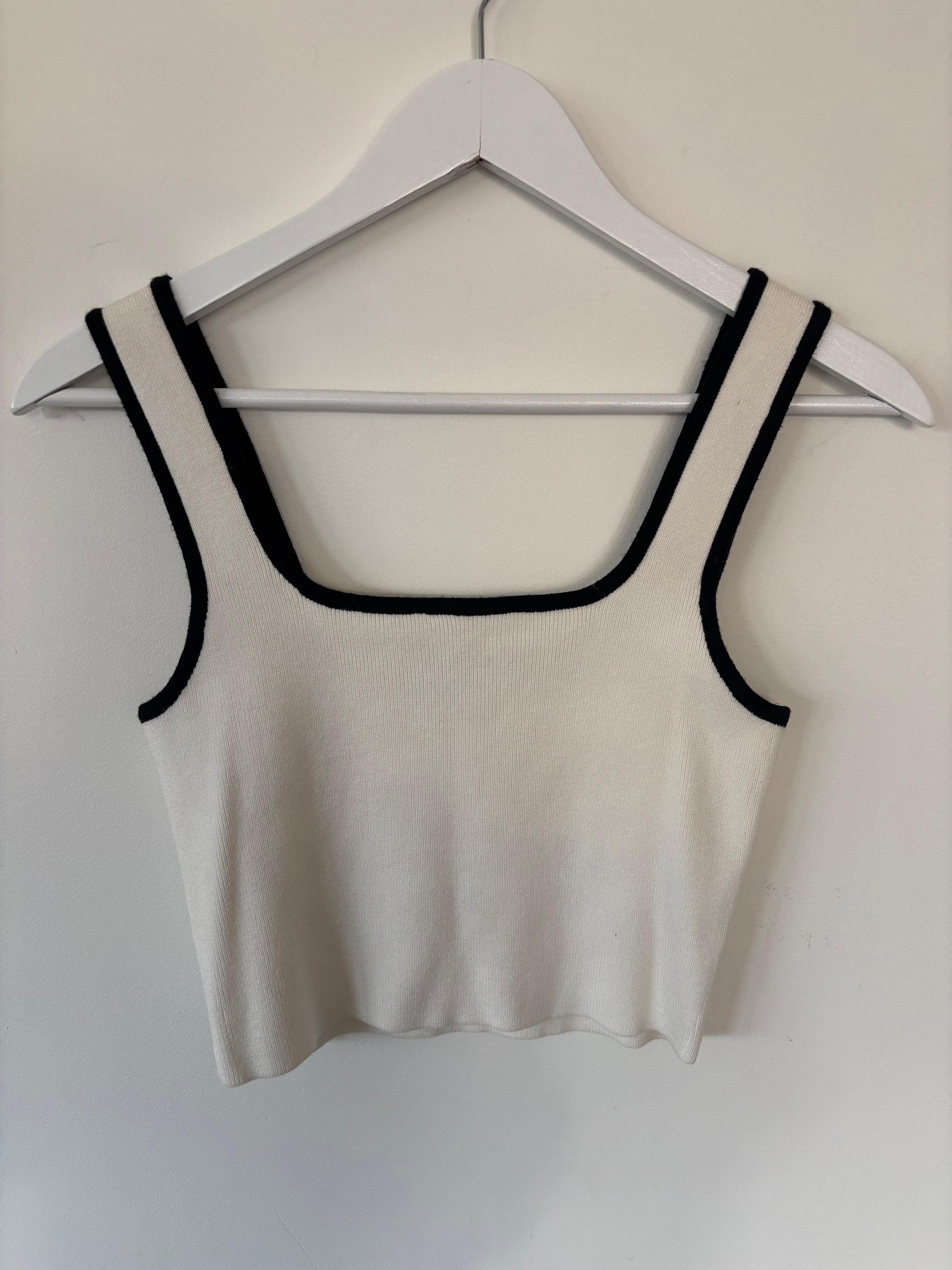Dynamite Knit White Tank with Black Tipping | Medium (N203K6)