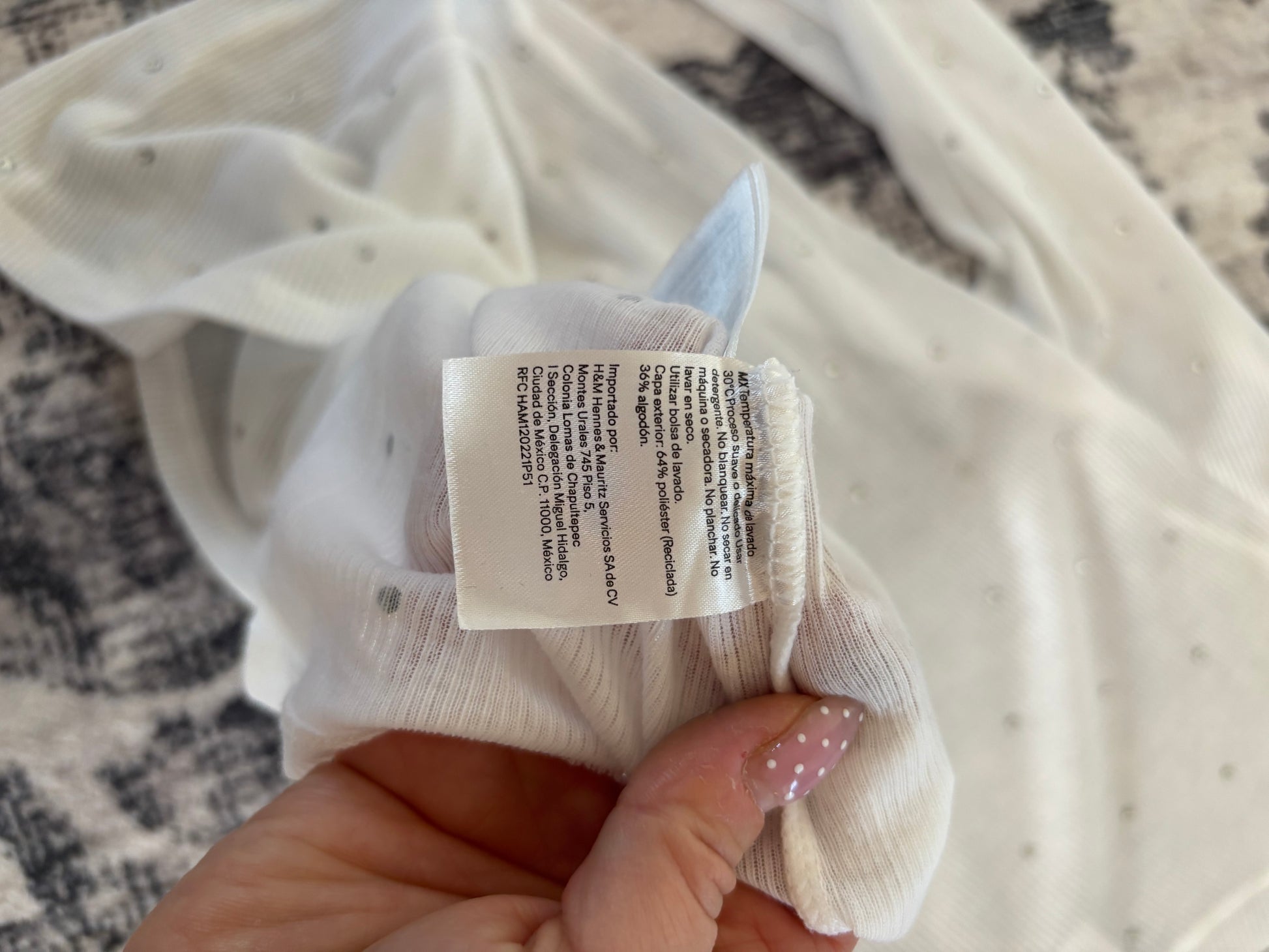 H&M Long Sleeve White Rhinestone Top | XLarge / may fit like Large (N102N19)