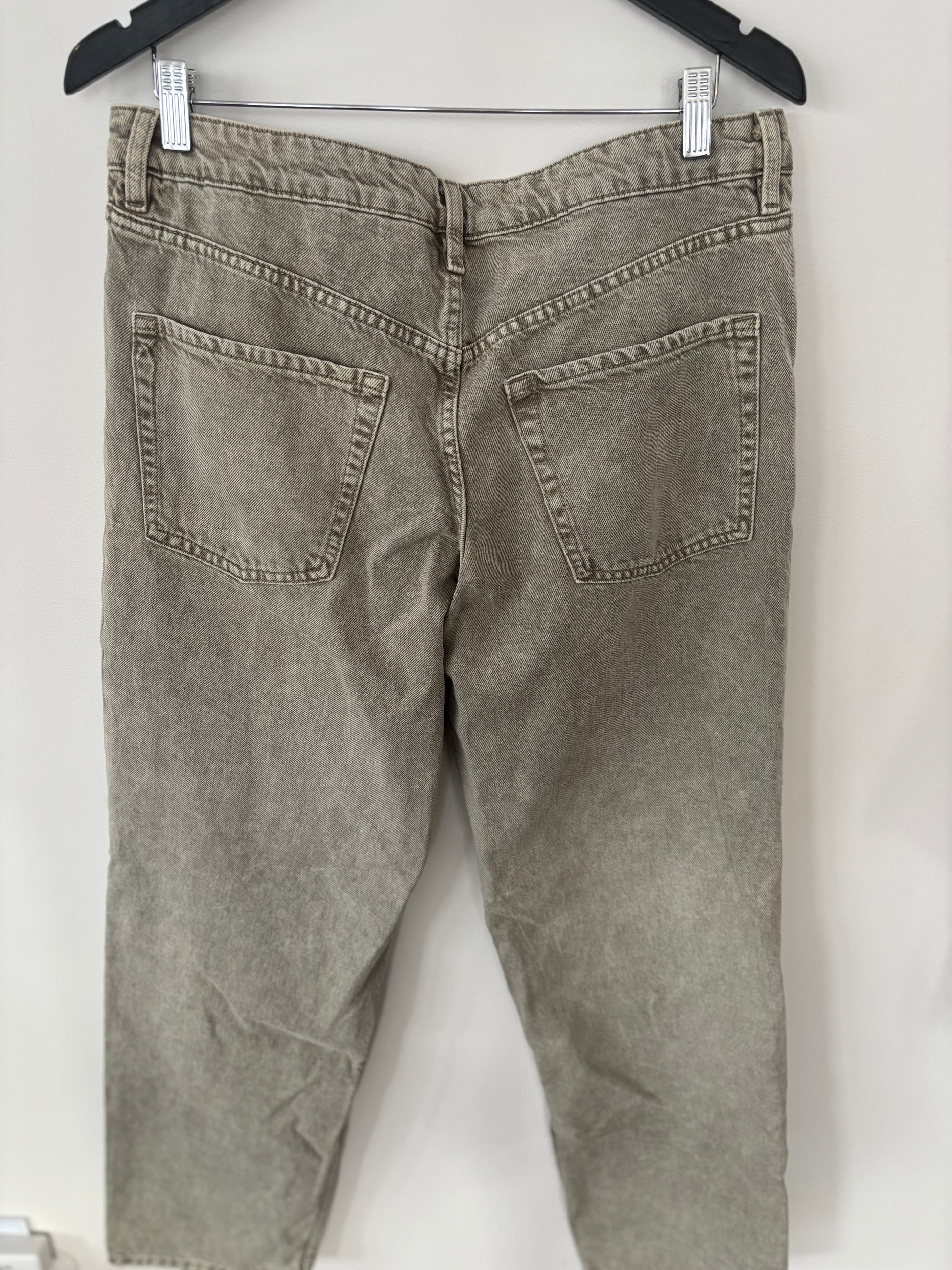 Details/fit: Soft denim with a subtle green/grey wash. Straight leg fit and high /mid waist.