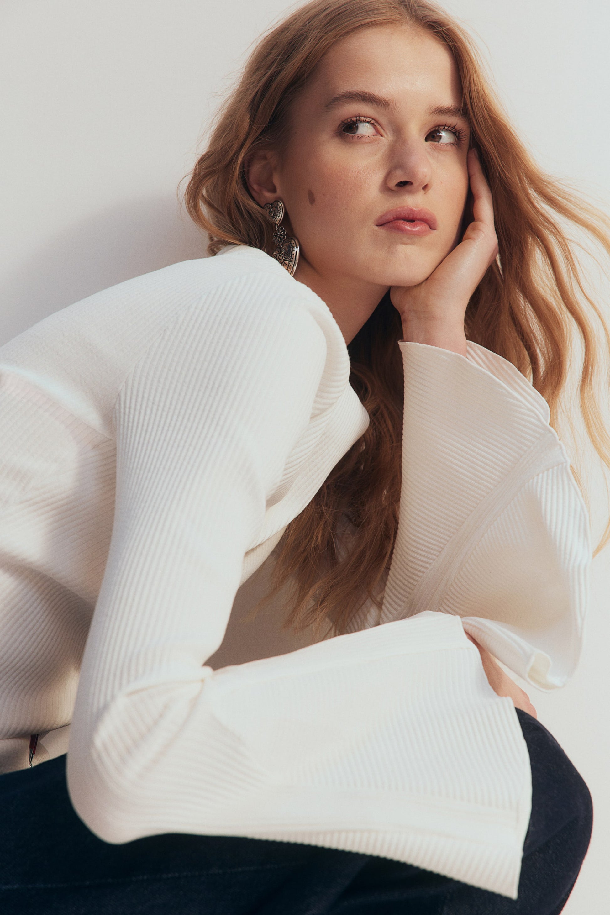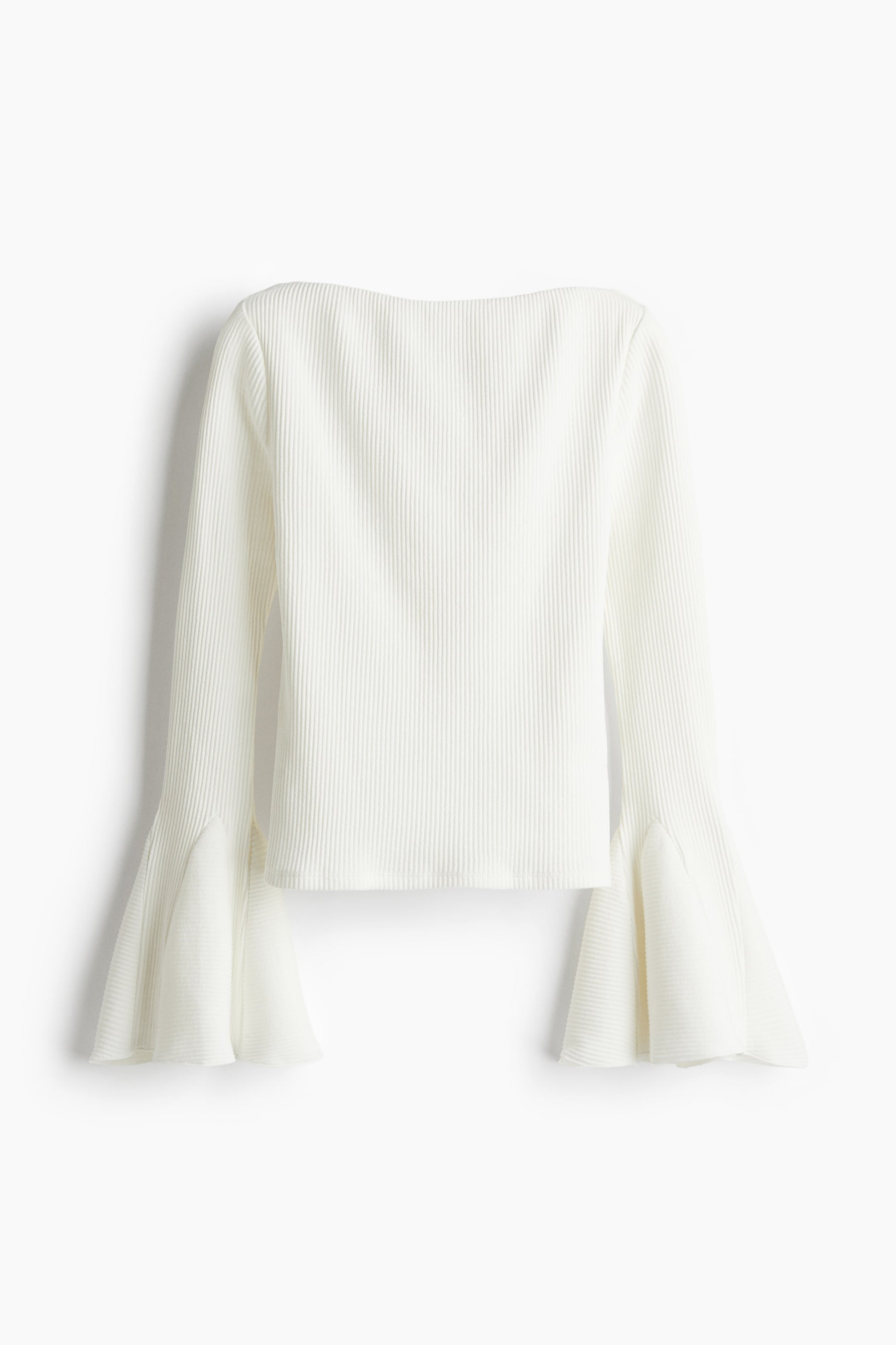 Details/fit: Fitted top in ribbed cotton jersey. Delicate boat neck, long trumpet sleeves, and a straight-cut hem.