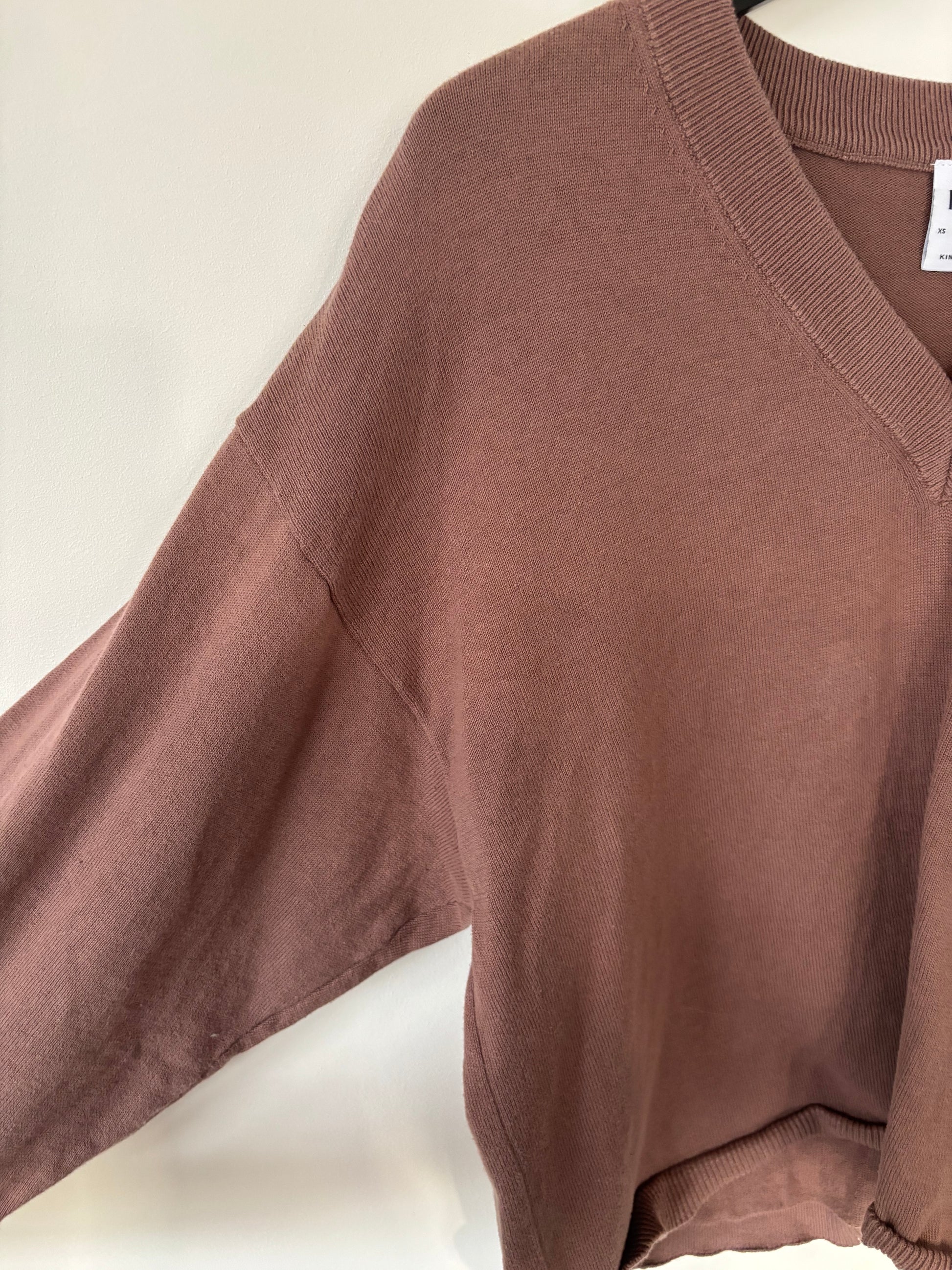 Her. V Neck Brown Cotton Sweater | Medium (D107C1)