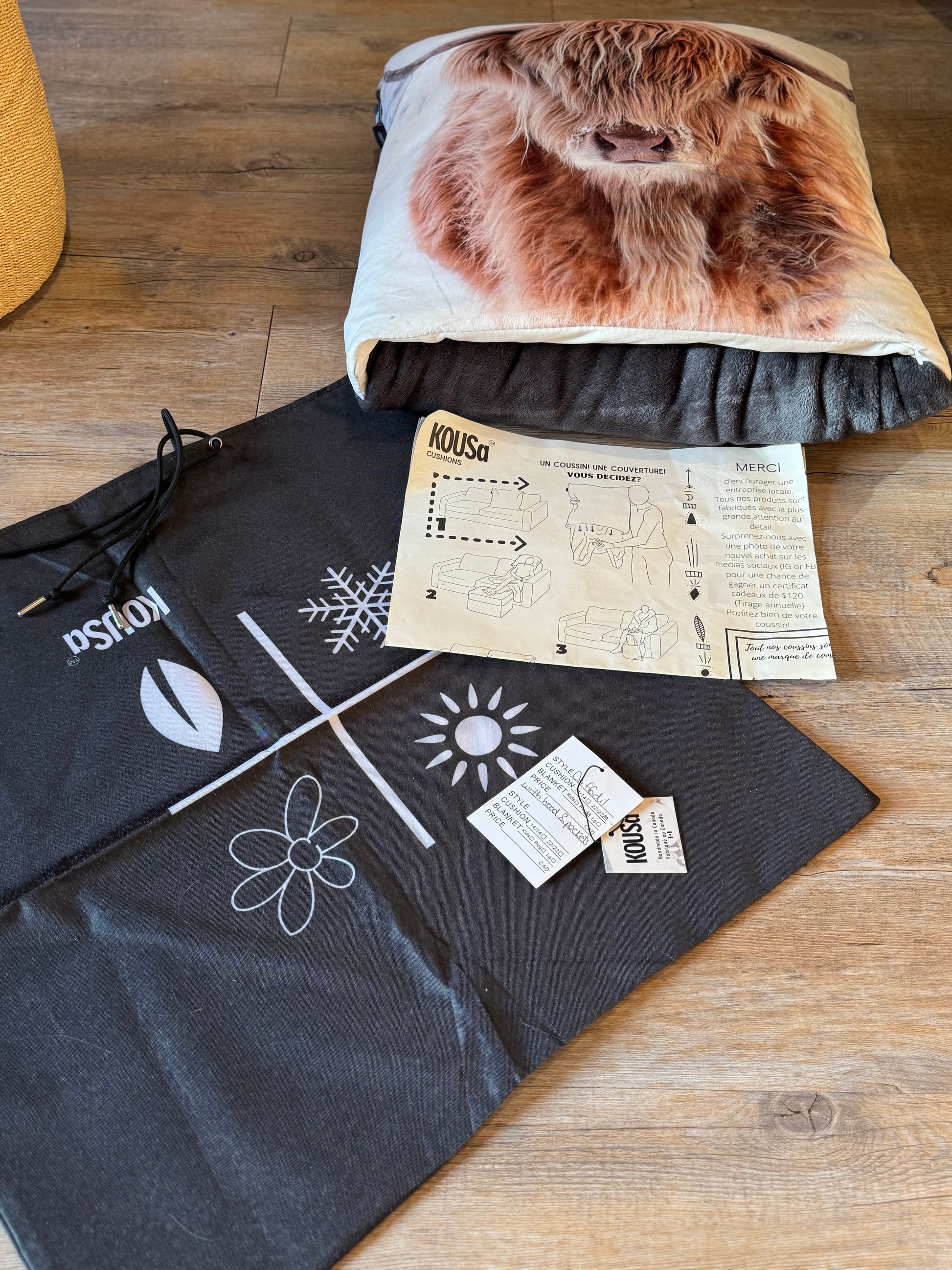 “Exclusively designed and made in Canada, our pillow blanket is a luxurious, multi-functional piece designed to bring you warmth and comfort while a blanket, while matching your decor beautifully when it’s a cushion…”