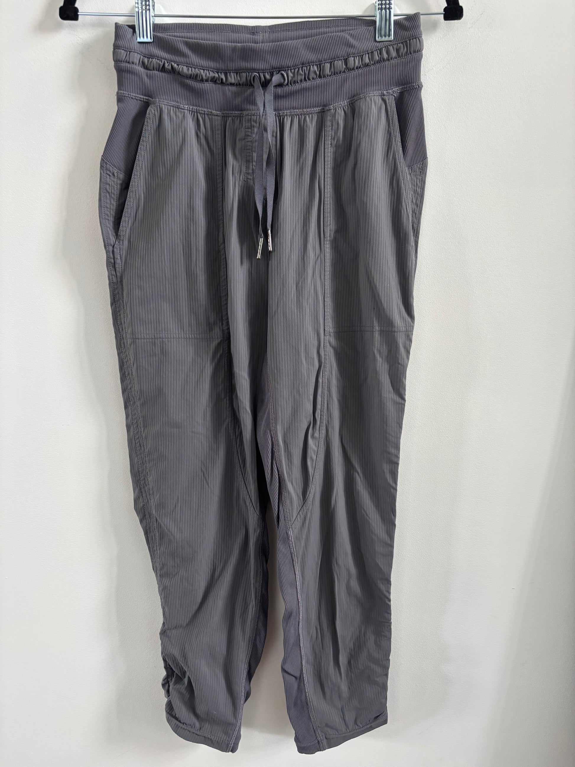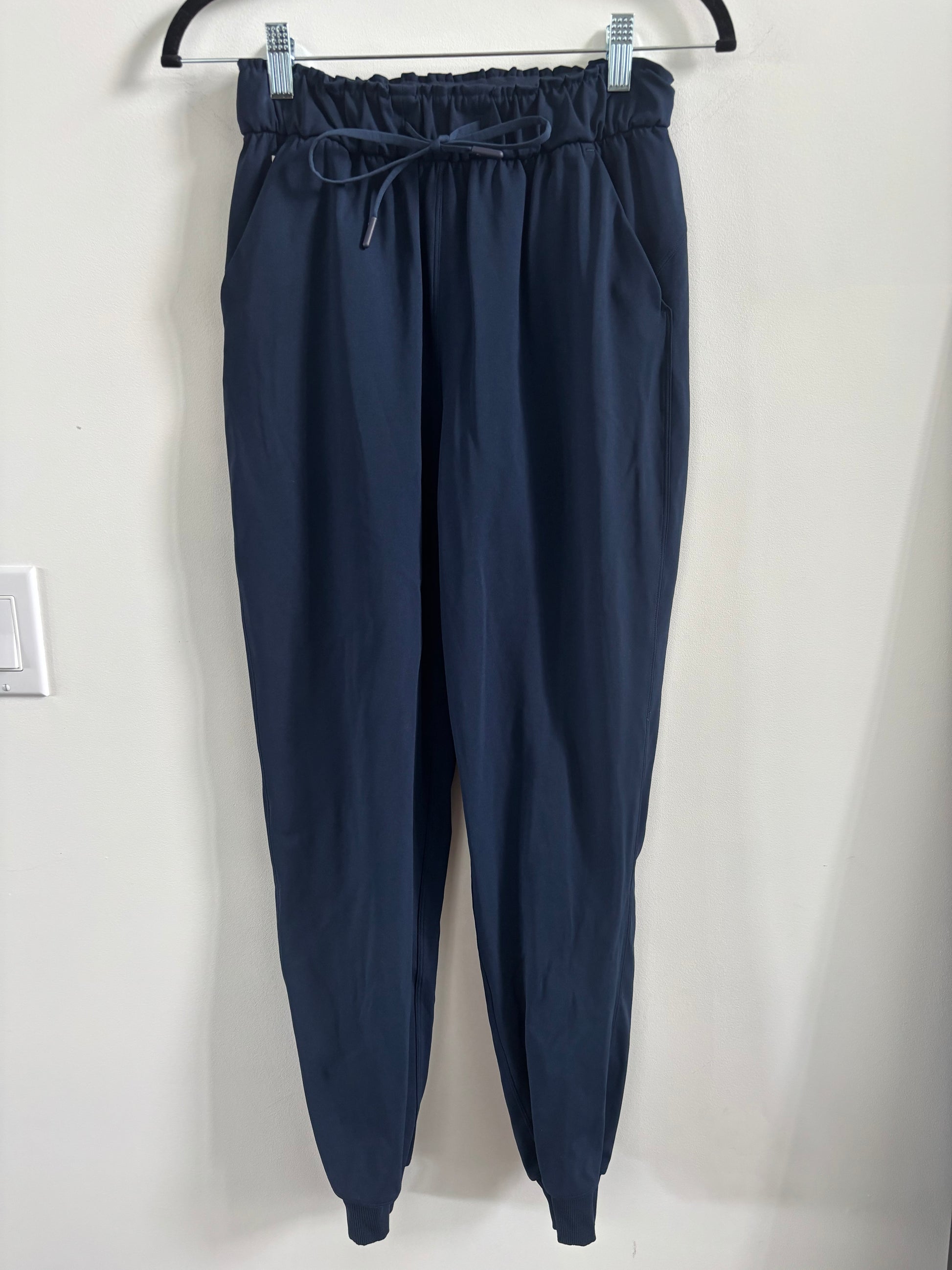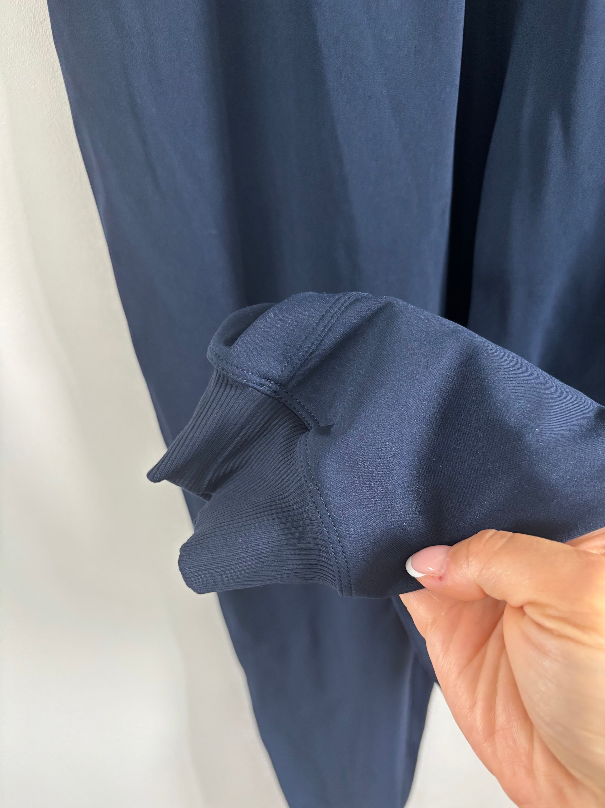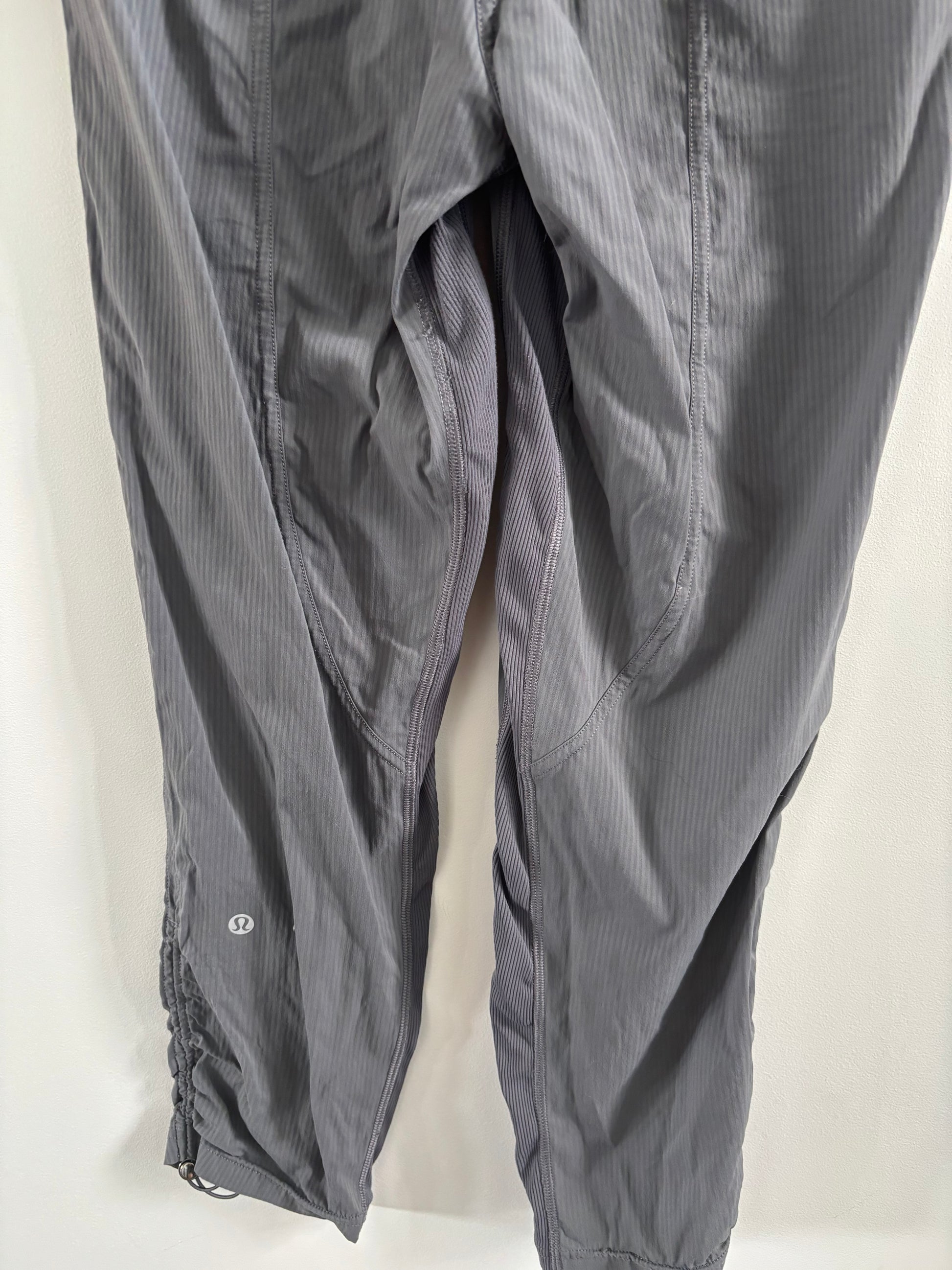 Size/fit: slim fit, high rise. Zippers at cuff. Continuous drawcord. Hip zipper pocket