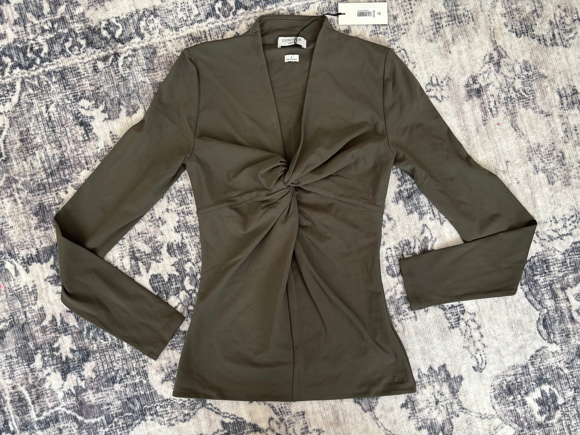 This is a V-neck long sleeve with a twisted front and double-layer fabric for a supportive fit. It’s made with Aritzia’s Contour — luxe, ultra-flattering fabric coveted for its smoothing effect and second-skin feel. Nothing more essential.