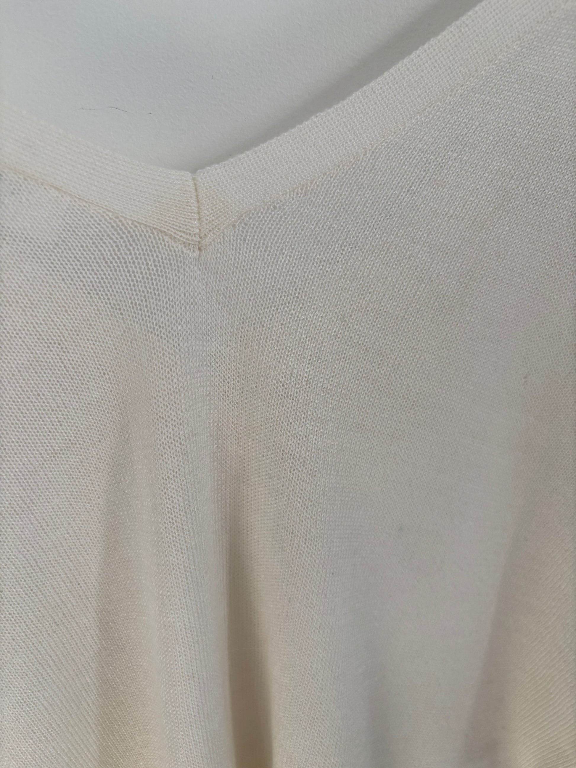 Size/fit: Dropped shoulders, low button down v-neck or higher v-neck on reverse side