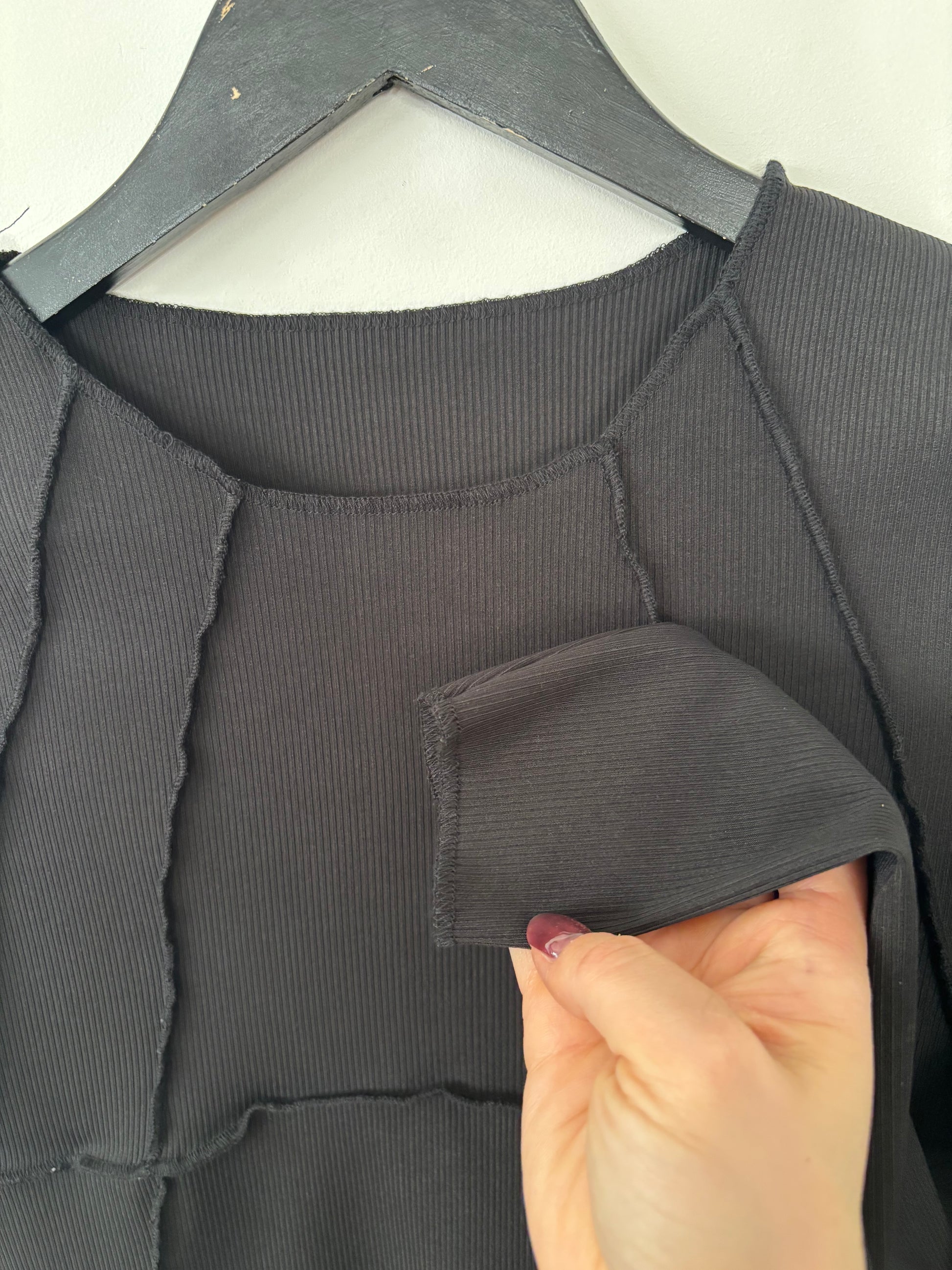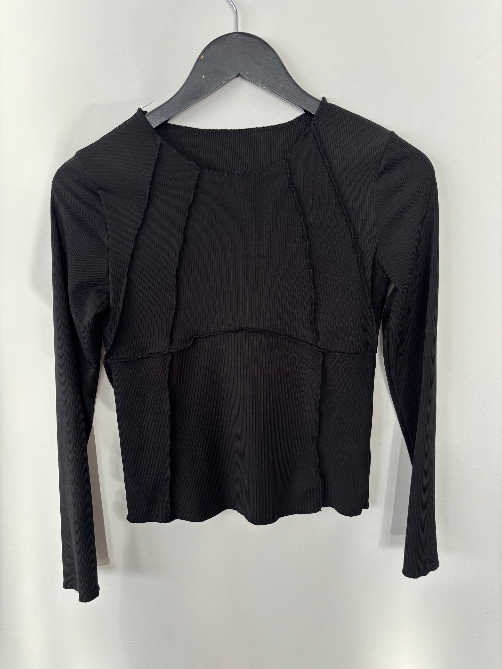 Reverse Seam Black Long Sleeve Top | Sz Small (D002R5)