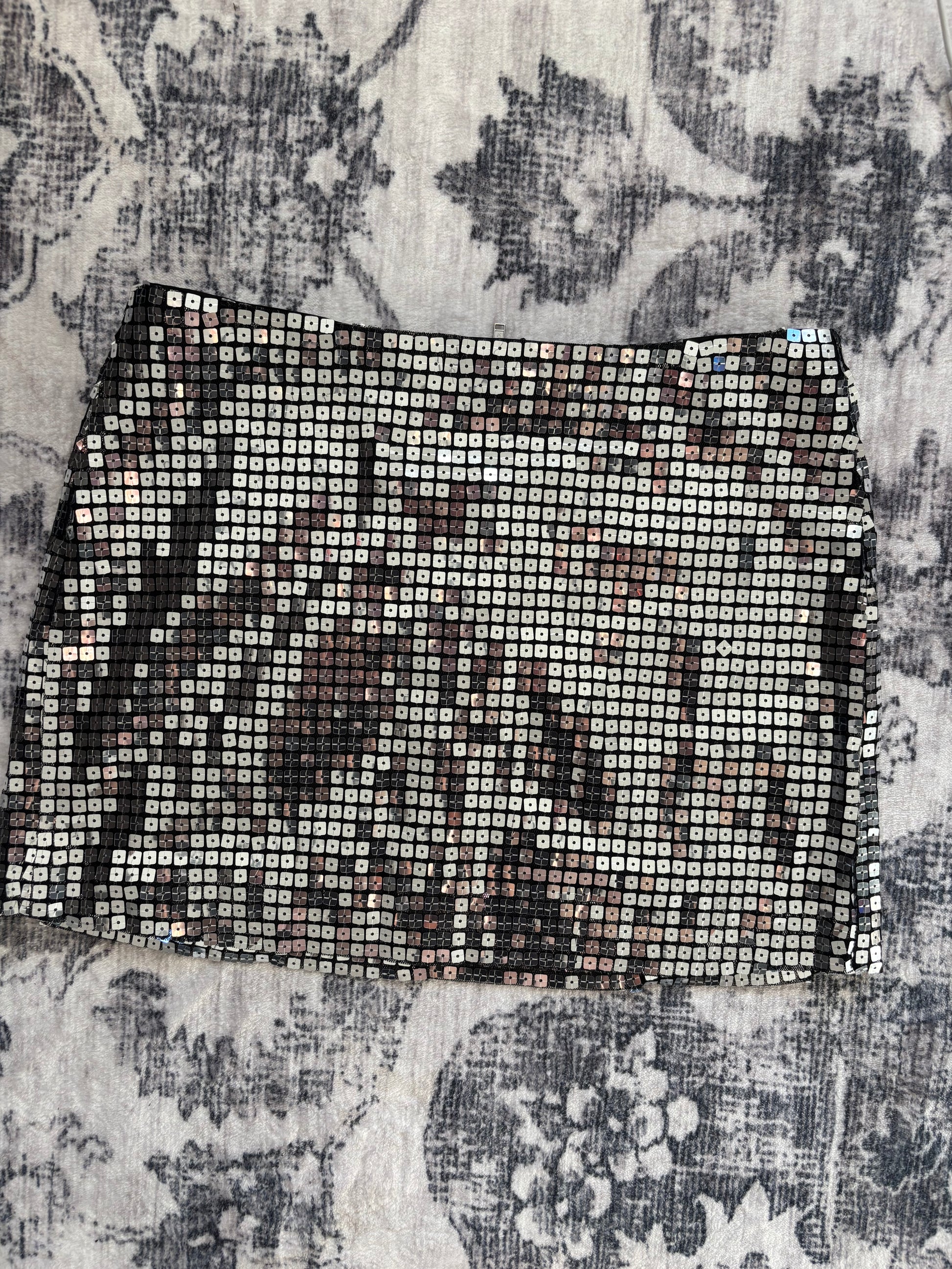 Runaway the Label Silver** Sequin Embellished Mini Skirt | Sz XS (N259A22)