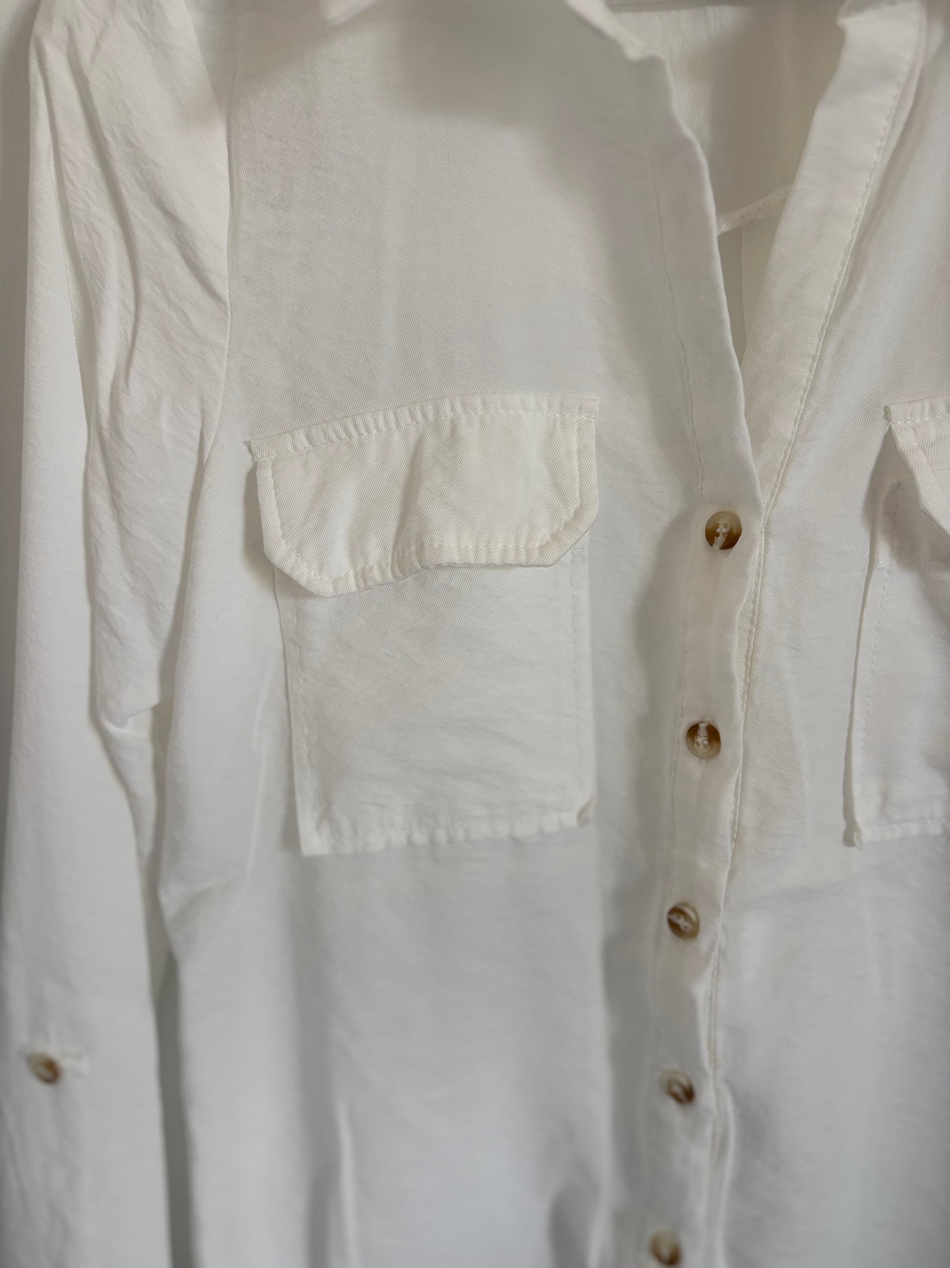The Workshop White Button Down Utility Shirt | Medium (O27L4)
