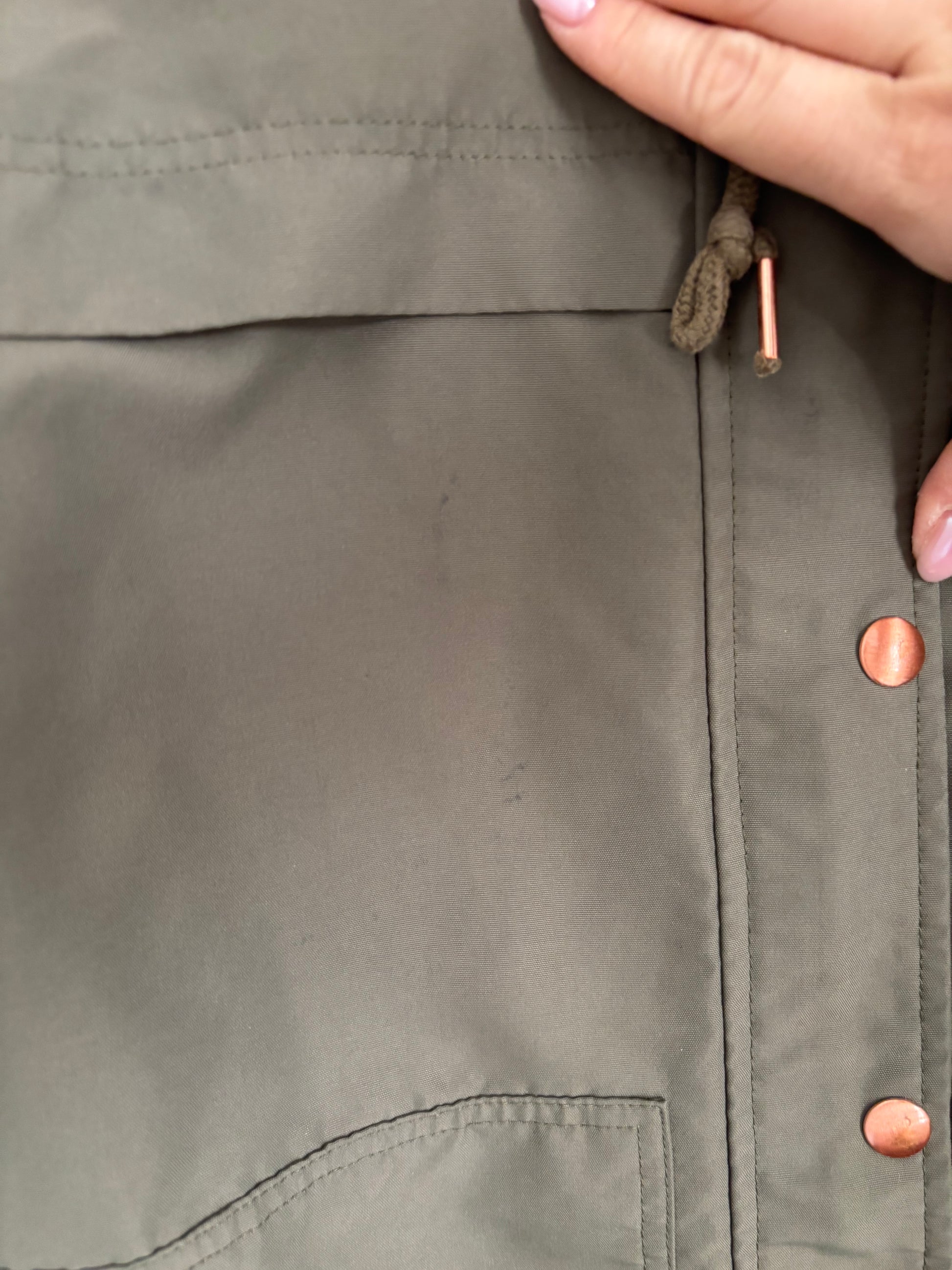 Condition: Loved / Tough Love (very faint bluish marks on front right chest)