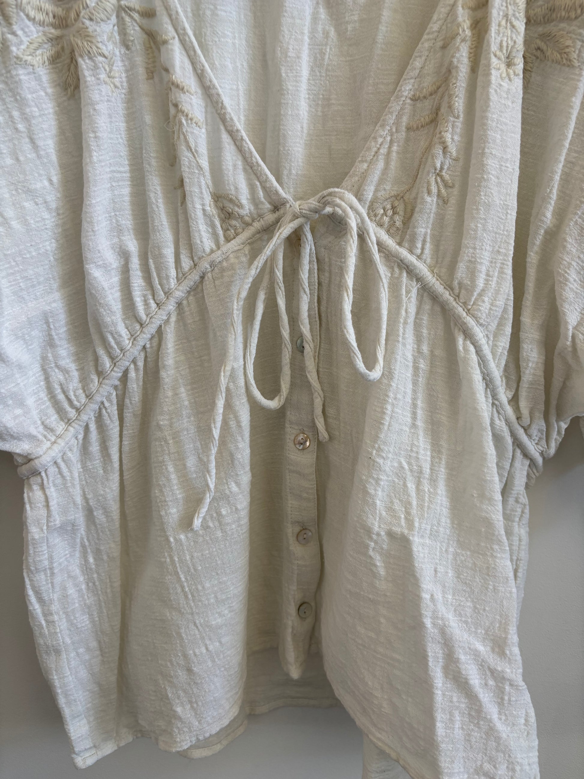 White Crow Embroidery Detailed Blouse| Small Oversized (O67M10)